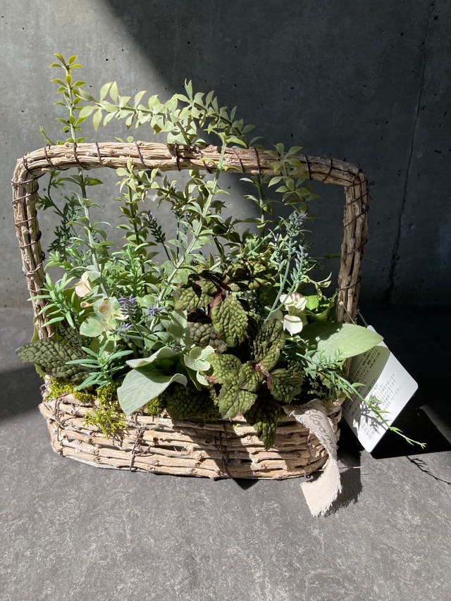 2026ss 新作ボーダレスグリーン ミントバスケット Mサイズ サイズ:約 21×10cm H20cm 水やり厳禁 直射日光、高温多湿を避けて お飾りください ============= アーティフィシャルリーフを貼り合わせた デザイン性の高いトピアリー ナチュラルモダンなオブジェに ボーダレスグリーンアレンジメントです お部屋のアクセントに ぴったり 暮らしをワクワクしていただけたら 嬉しいです ******** フラワーデザイナー江尻チハルによる ボーダレスグリーン。 全ての人に平等に 生花造花の垣根を越えて。 水やり不要で、手軽に空間を彩ります。 【主な花材】 ・植物(アーティフィシャルフラワー 造花) ・プリザーブドモス プリザーブドモスは、プリザーブド加工の特性として 湿気による色落ち・カビ・虫、乾燥による散り・破れなどがございます。 御了承ください。